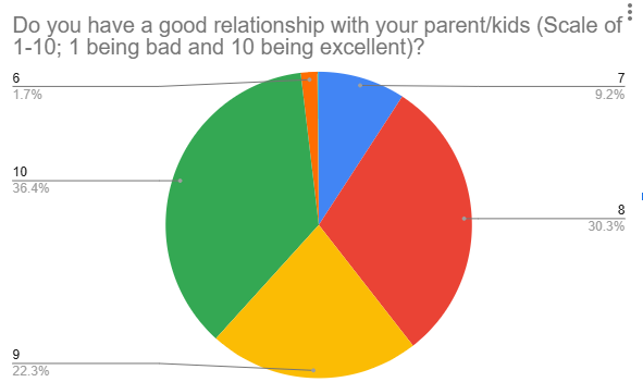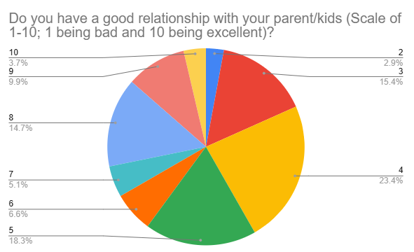 We asked 82 parents and 60 teens to evaluate their parent-teens relationship using scale of 1-10. We saw an interesting result: Parent basically think they have good relationship, while most of the teens are not satisfied with parent-teens relationship.